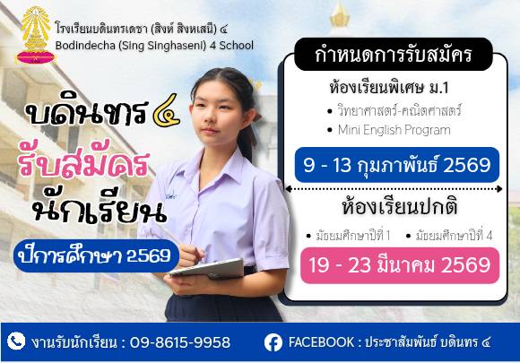 ประกาศการรับนักเรียนชั้นมัธยมศึกษาปีที่ 1 ปีการศึกษา 2569 ห้องเรียนพิเศษ วิทยาศาสตร์ - คณิตศาสตร์ รอบ 2