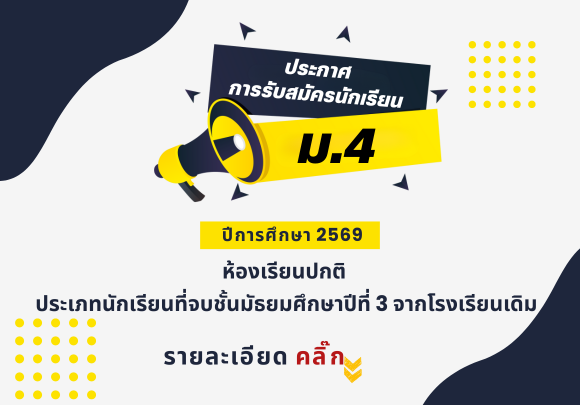 ประกาศรับสมัครนักเรียนชั้นมัธยมศึกษาปีที่ 4 ปีการศึกษา 2569 ห้องเรียนปกติ ประเภทนักเรียนที่จบ ม. 3 จากโรงเรียนเดิม