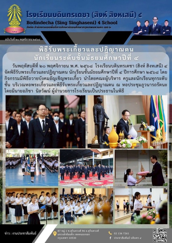 พิธีรับพระเกี้ยวและปฏิญาณตนนักเรียนระดับชั้นมัธยมศึกษาปีที่ ๔
