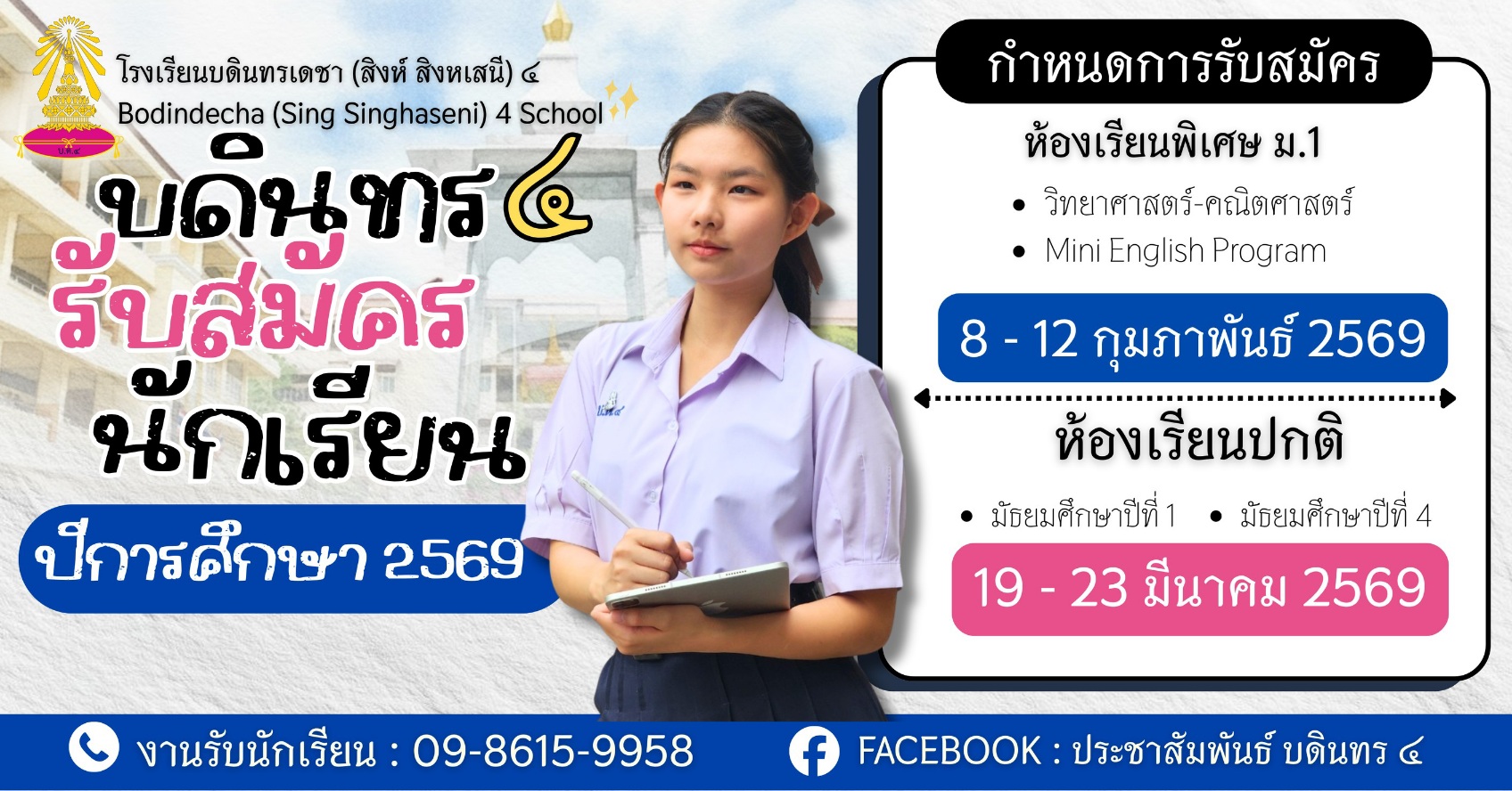 กำหนดการรับนักเรียน ประจำปีการศึกษา 2569