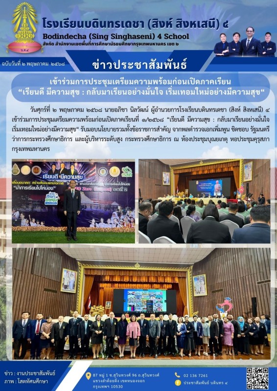 เข้าร่วมการประชุมเตรียมความพร้อมก่อนเปิดภาคเรียน "เรียนดี มีความสุข : กลับมาเรียนอย่างมั่นใจ เริ่มเทอมใหม่อย่างมีความสุข"
