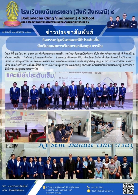 กิจกรรมปฐมนิเทศและพิธีประดับเข็มนักเรียนแผนการเรียนภาษาอังกฤษ การบิน