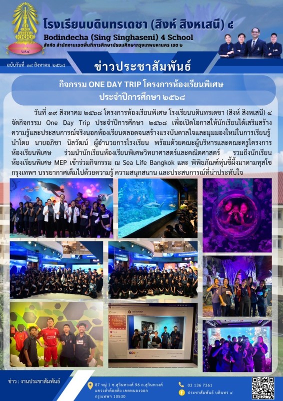 กิจกรรม ONE DAY TRIP โครงการห้องเรียนพิเศษ ประจำปีการศึกษา 2568