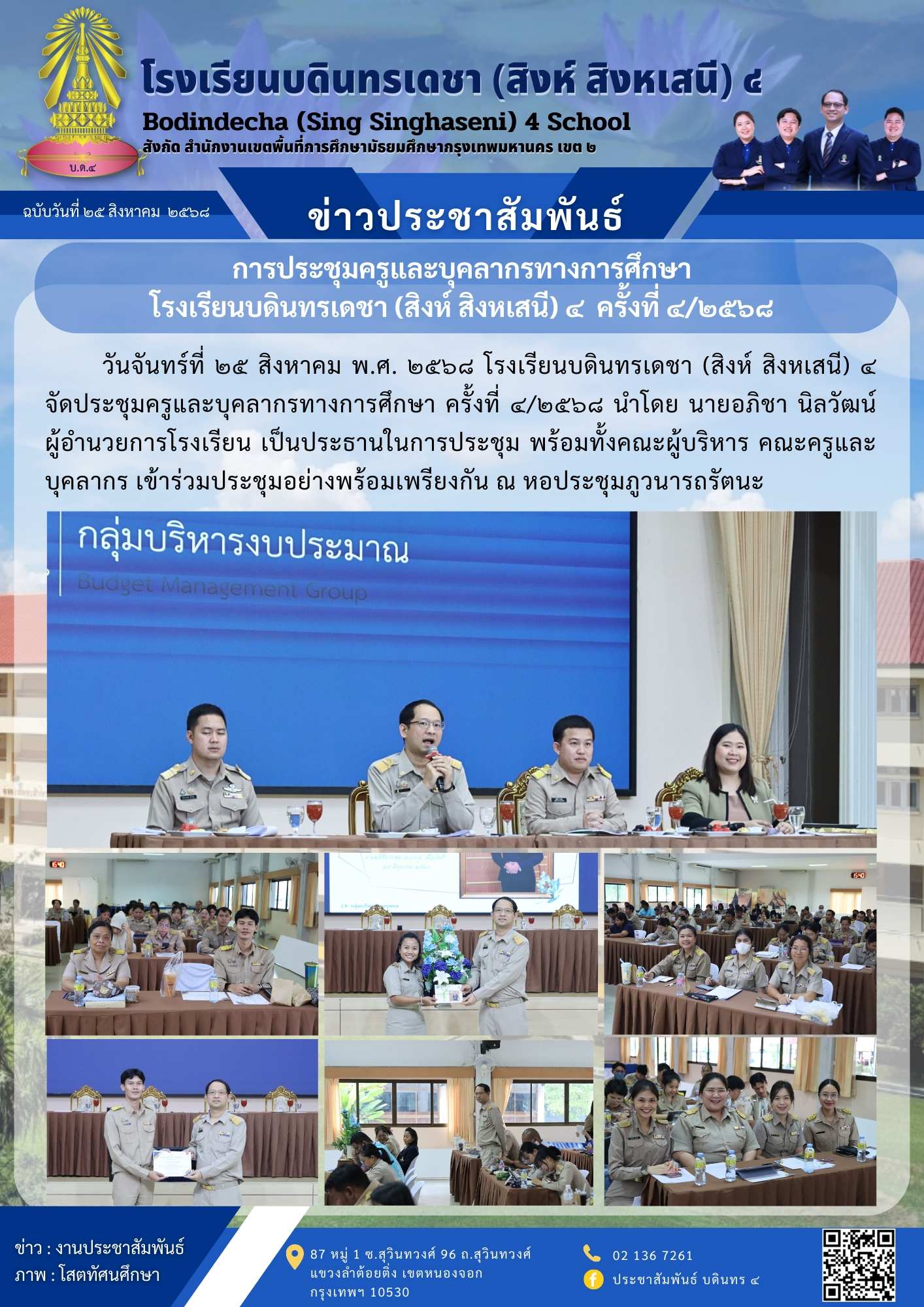 การประชุมครูและบุคลากรทางการศึกษา โรงเรียนบดินทรเดชา (สิงห์ สิงหเสนี) ๔ ครั้งที่ 4/2568
