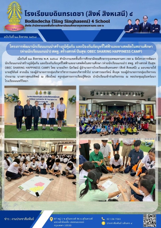 โครงการพัฒนานักเรียนแกนนำสร้างภูมิคุ้มกัน และป้องกันภัยบุหรี่ไฟฟ้าและยาเสพติดในสถานศึกษา (ค่ายนักเรียนแกนนำ)