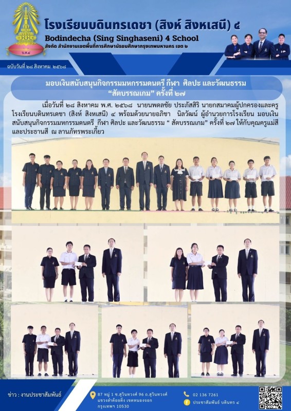 มอบเงินสนับสนุนกิจกรรมมหกรรมดนตรี กีฬา ศิลปะ และวัฒนธรรม "สัตบรรณเกม" ครั้งที่ 27