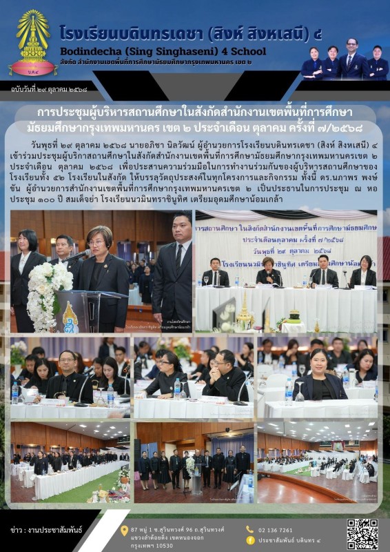 การประชุมผู้บริหารสถานศึกษาในสังกัดสำนักงานเขตพื้นที่การศึกษา มัธยมศึกษากรุงเทพมหานคร เขต ๒ ประจำเดือน ตุลาคม