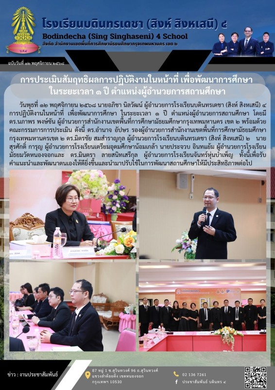 การประเมินสัมฤทธิผลการปฏิบัติงานในหน้าที่ เพื่อพัฒนาการศึกษา ในระยะเวลา 1 ปี ตำแหน่งผู้อำนวยการสถานศึกษา