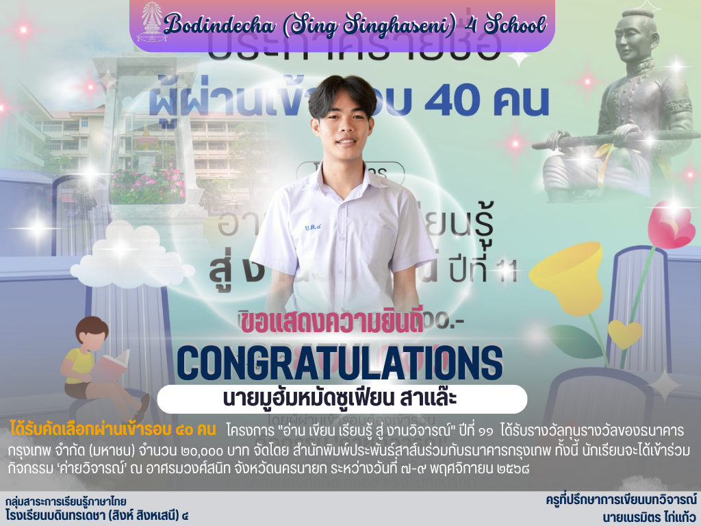 ยินดีต้อนรับสู่ โรงเรียนบดิทรเดชา (สิงห์ สิงหเสนี) ๔ ค่ะ.....ท่านสามารถค้นหาข้อมูลได้ตามเมนูที่ท่านต้องการค่ะ