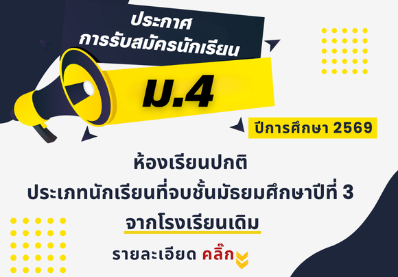 ประกาศ การรับนักเรียนชั้นมัธยมศึกษาปีที่ 4 ปีการศึกษา 2569 ที่จบ ม.3 จากโรงเรียนเดิม