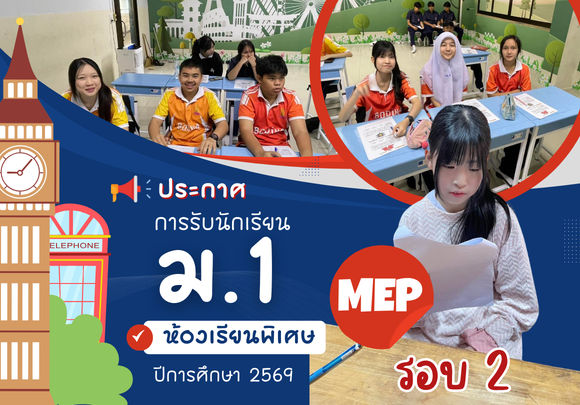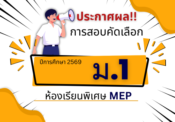 ประกาศ ผลการสอบคัดเลือกนักเรียนระดับชั้น ม.1 ปีการศึกษา 2569 ประเภท ห้องเรียนพิเศษ MEP