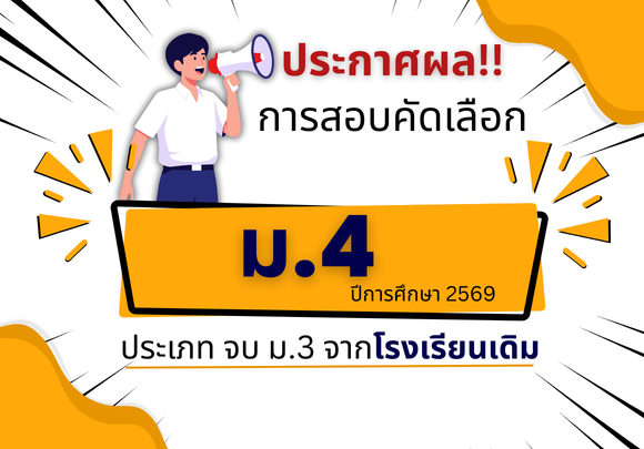 ประกาศ ผลการสอบคัดเลือกนักเรียนระดับชั้น ม.4 ปีการศึกษา 2569 ประเภท นักเรียนที่จบจากโรงเรียนเดิม