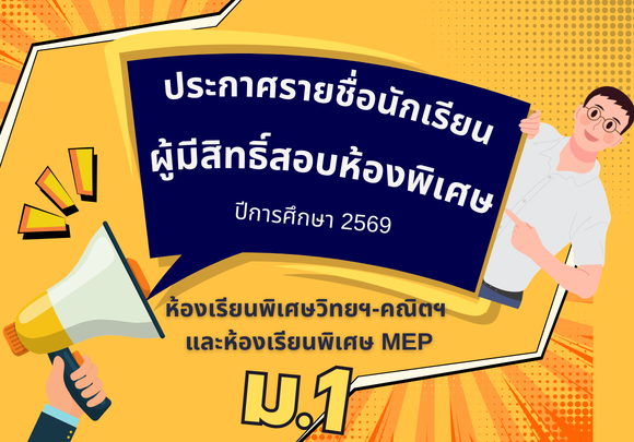 ประกาศรายชื่อนักเรียนผู้สิทธิ์สอบ ชั้นมัธยมศึกษาปีที่ 1 ห้องเรียนพิเศษวิทยาศาสตร์และคณิตศาสตร์ ห้องเรียน MEP