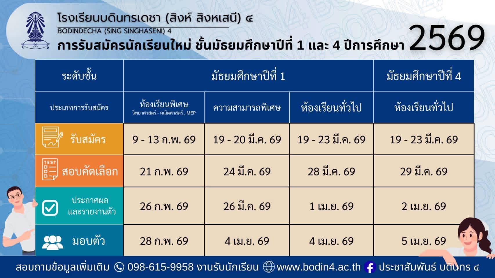 ประกาศ รายละเอียดการคัดเลือกนักเรียนชั้นมัธยมศึกษาปีที่ 1 ปีการศึกษา 2569 ห้องเรียนปกติ ประเภทนักเรียนทั่วไปที่มีความสามารถพิเศษ