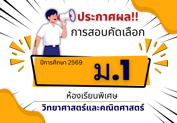 ประกาศ ผลการสอบคัดเลือกนักเรียนระดับชั้น ม.1 ปีการศึกษา 2569 ประเภท ห้องเรียนพิเศษ วิทย์ คณิต